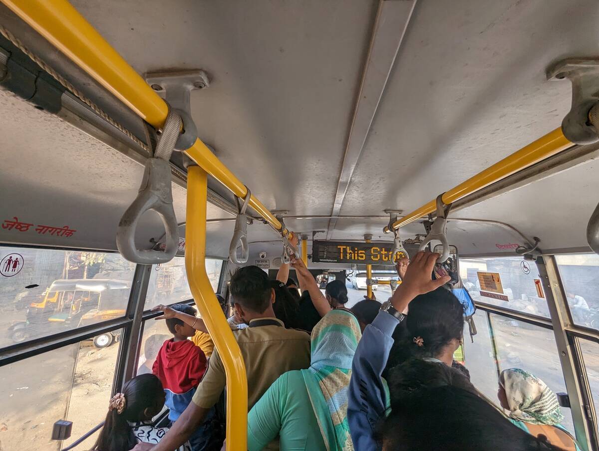 というか、そもそもバス停はないものの大体止まる場所が決まってて、ドアが開いた瞬間、それをめがけてその辺で待ってるインド人が大挙して乗ってくる感じでした。中央線や山手線の比じゃないすごい勢い(自分が乗るために誰かが乗るのを妨害するとか、平気で人を押し出すとか)なので💦ちょっとたじろぎましたが、自分も無理くり?やっとの思いで乗り込みました。