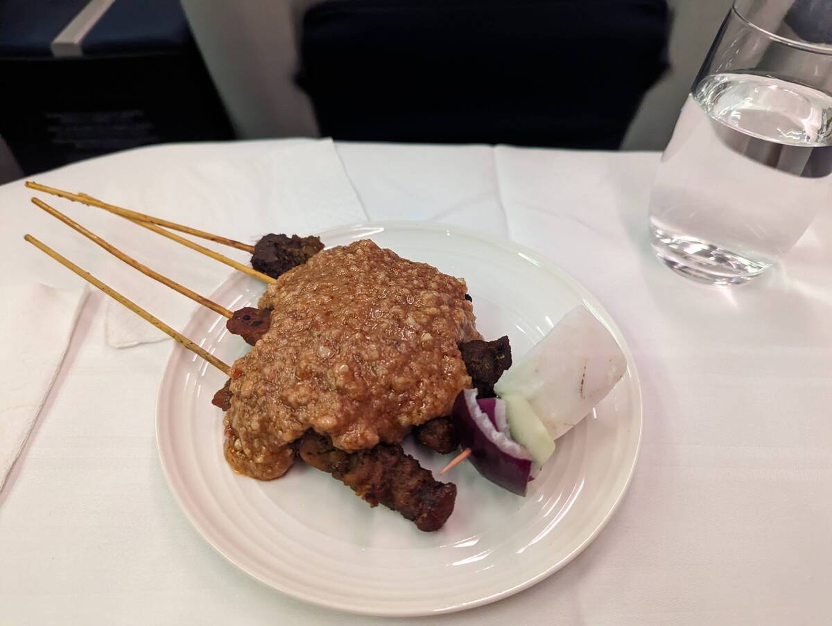 機内食のメニューです。前回は国際線ですが飛行時間短すぎて提供されなかったサテが載っています!ワクワク
