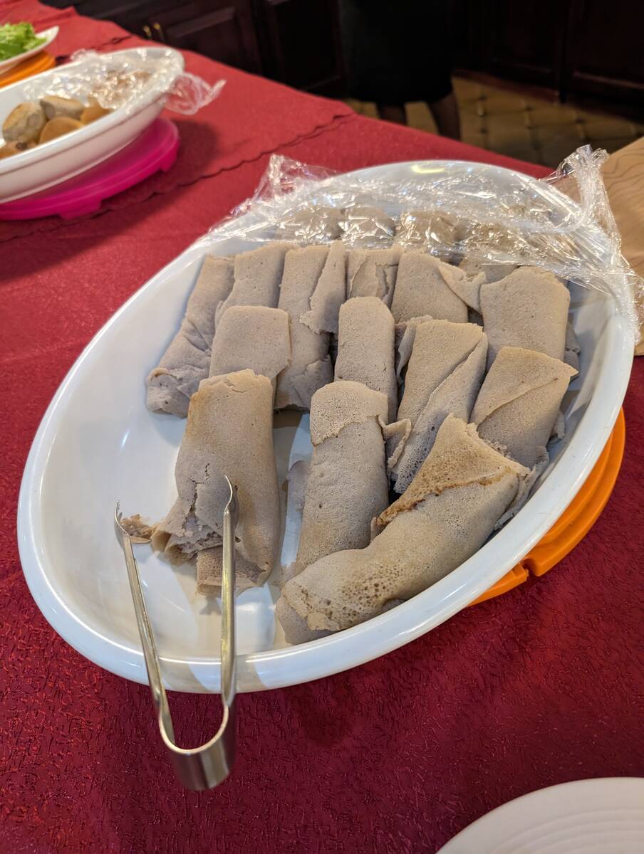 これをインジュラに付けて食べるのだとのこと。右側のなんかペースト状のがトウガラシの辛さでなかなか辛いのだがこれはこのインジュラに付けるとかなり美味しい。